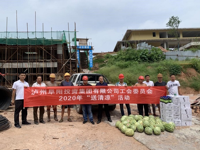 近日,合江持續(xù)高溫,為保障一線人員的身體健康,確保各項生產(chǎn)工作安全有序開展,8月11日,集團(tuán)公司黨委委員、工會主席袁健,帶領(lǐng)集團(tuán)黨群紀(jì)檢工作部、綜合部先后深入鑫晟學(xué)府、殯儀中心、龍掛山景區(qū)等十多個項目建設(shè)現(xiàn)場,看望慰問奮戰(zhàn)在一線的工作者,為他們送去清涼物資和關(guān)心關(guān)愛。
