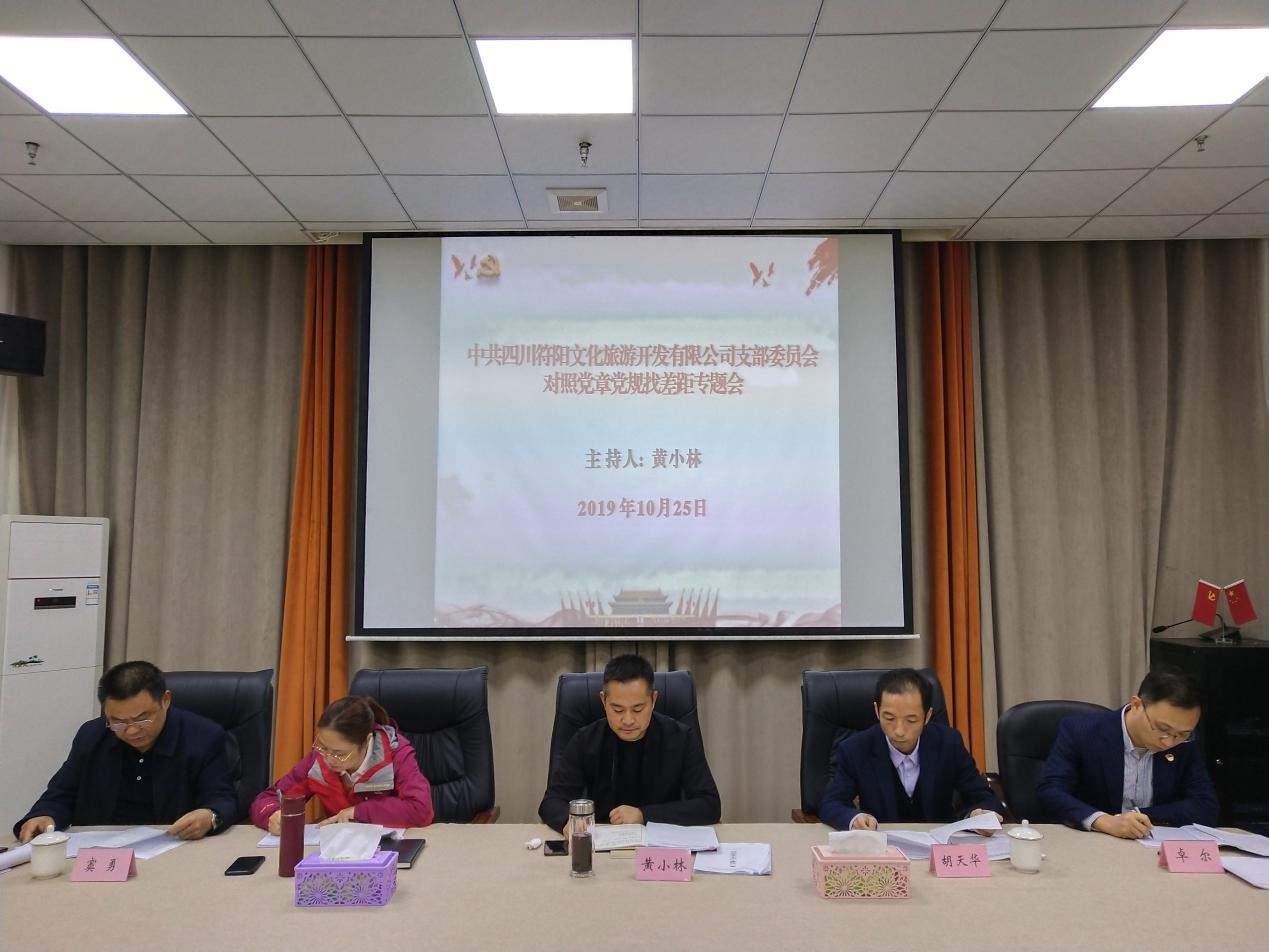 2019年10月25日下午,符陽文旅黨支部召開“不忘初心、牢記使命”主題教育對照黨章黨規(guī)找差距專題會議,集團黨委第四指導(dǎo)組組長胡天華同志到會指導(dǎo)。