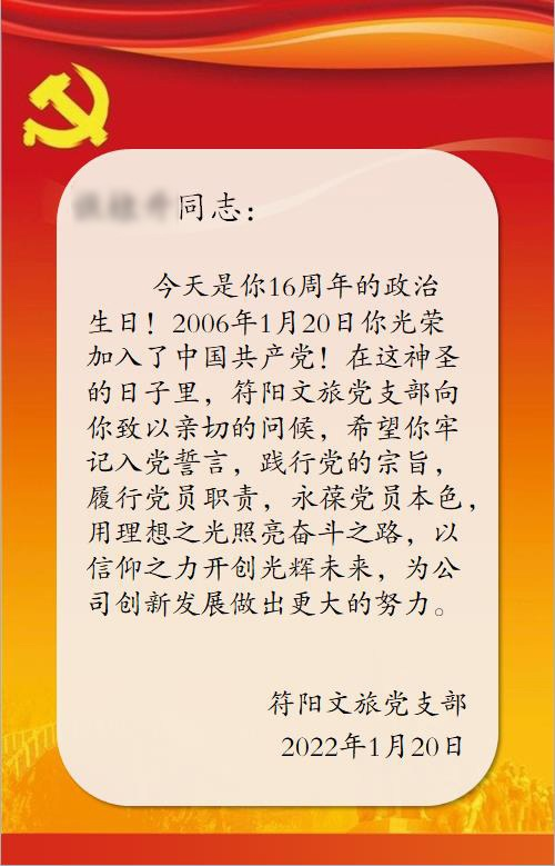 為進(jìn)一步強(qiáng)化黨員黨性教育,增強(qiáng)黨員政治身份認(rèn)同感,發(fā)揮黨員先鋒模范作用,符陽文旅黨支部為每位黨員過好...