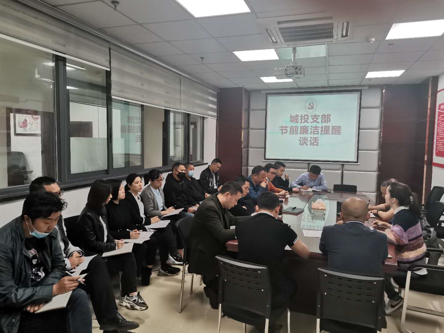 2020年5月22日,城投支部召集支部全體黨員、中層及以上領(lǐng)導干部、重點崗位人員開展2020年度警示...
