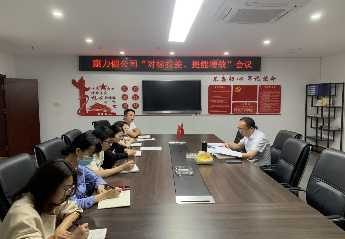 2022 年 4 月 29 日 上 午 , 按 照 阜 陽 集 團(tuán) 黨 委 要 求 , 康 力 健 公 司 組 織 各 部 門 負(fù) 責(zé) 人 開 展 “ 對 標(biāo) 找 差 、 提 能 增 效 ” 會 議 , 康 力 健公司總經(jīng)理鄭 世來 主持會議。