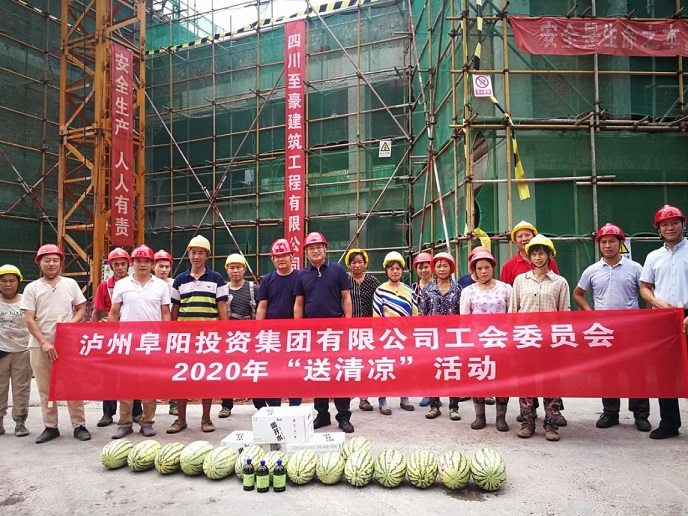 近日,合江持續(xù)高溫,為保障一線人員的身體健康,確保各項生產(chǎn)工作安全有序開展,8月11日,集團(tuán)公司黨委委員、工會主席袁健,帶領(lǐng)集團(tuán)黨群紀(jì)檢工作部、綜合部先后深入鑫晟學(xué)府、殯儀中心、龍掛山景區(qū)等十多個項目建設(shè)現(xiàn)場,看望慰問奮戰(zhàn)在一線的工作者,為他們送去清涼物資和關(guān)心關(guān)愛。