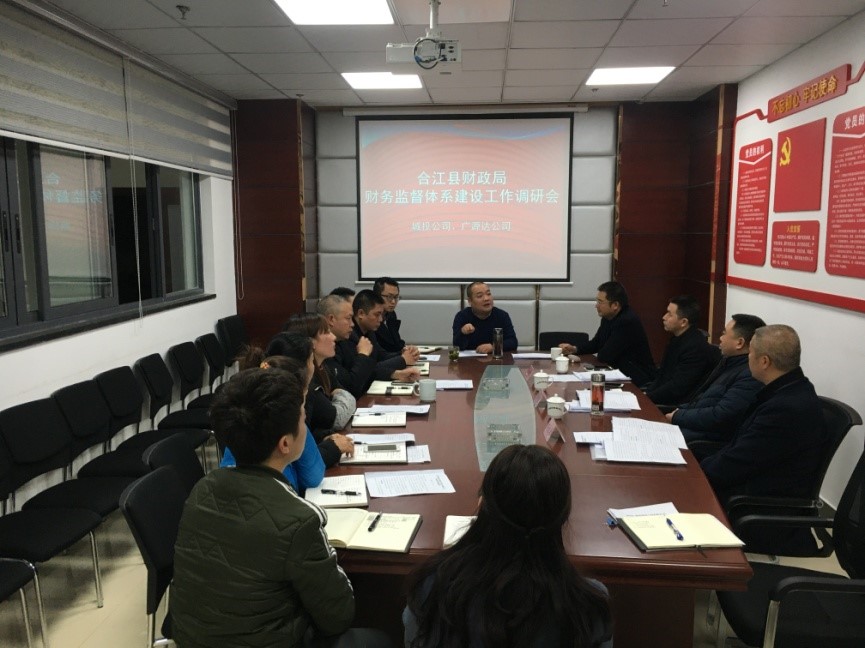 2019年11月21日,合江縣財(cái)政局黨組成員、財(cái)監(jiān)局局長楊向前帶隊(duì)對城投公司、廣源達(dá)公司開展財(cái)務(wù)監(jiān)督體系建設(shè)工作調(diào)研。公司主要領(lǐng)導(dǎo)、監(jiān)事會主席、各部門負(fù)責(zé)人、財(cái)務(wù)人員等參會。