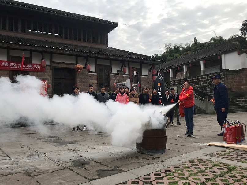 2019年11月14日上午,符陽文旅公司在堯壩古鎮(zhèn)游客中心組織開展了消防安全應(yīng)急演練。