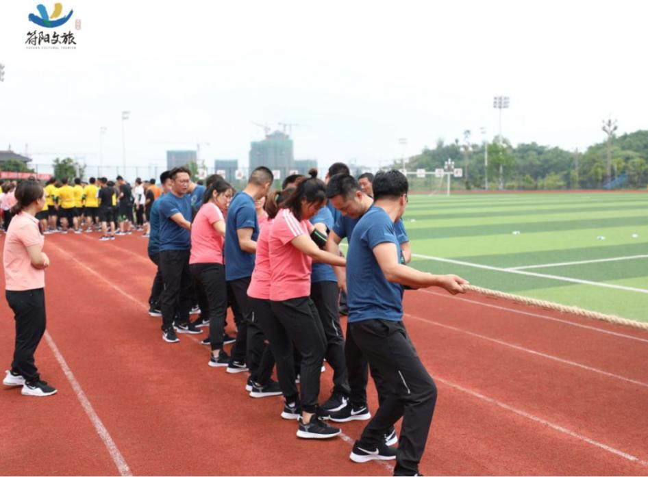 隨著哨聲一響,我們雙手握緊長(zhǎng)繩,咬緊牙關(guān)向后拉,為了把握節(jié)奏形成合力,心里默念著“一二、一二”,場(chǎng)上一時(shí)僵持難下,但難敵強(qiáng)悍對(duì)手,第一局廣源達(dá)勝。這仿佛符合多數(shù)人的預(yù)期,但我們?cè)鯐?huì)被拘于這固定印象,越戰(zhàn)越勇才是符陽(yáng)文旅人的風(fēng)姿。第二場(chǎng)對(duì)決比第一場(chǎng)更加艱難,一開(kāi)場(chǎng)廣源達(dá)占據(jù)絕對(duì)優(yōu)勢(shì),我們險(xiǎn)被拉到了終線,全憑一口氣死撐,牙關(guān)咬緊,身體后傾,不斷降低重心,腳步穩(wěn)扎,做著別人眼里無(wú)畏的掙扎。一定不能越線!在超高壓下堅(jiān)持了十余秒,那一刻拼的就是韌勁!一群瘦弱的文旅人憑著一股拼勁慢慢把賽場(chǎng)主動(dòng)權(quán)掌握在了自己手中,每向后移動(dòng)一步,心里的勁更足了,如荒漠迷路的旅者遇見(jiàn)了綠洲,我們也尋得了力量之源。當(dāng)現(xiàn)場(chǎng)歡呼聲響起時(shí),我們已癱坐一片,不敢置信,我們贏啦!